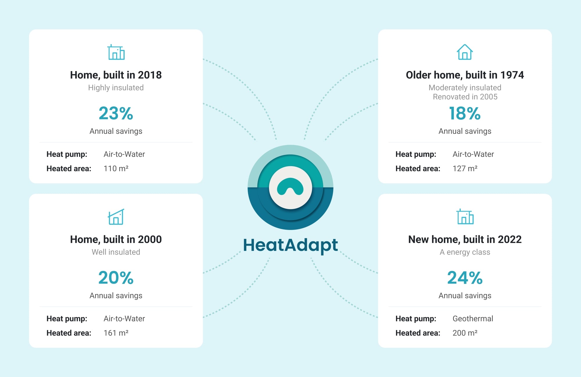 To assess the savings for Nordic homes, a study in collaboration with TalTech University examined more than ten buildings and modelled the average savings when using the HeatAdapt module. Based on they study and Baltic electricity prices in 2024, the results showed average savings of 14% to 24% per year on electricity costs. Monthly savings varied due to fluctuations in electricity market prices, reaching up to 31% per month.